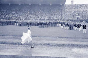 Finlandia tuvo que esperar doce años para poder celebrar sus Juegos Olímpicos, pues la II Guerra Mundial interrumpió las celebraciones y los prometidos Juegos a Helsinki, su capital, no pudieron celebrarse hasta 1952. Cuando por fin tuvieron lugar empezaron a lo grande, con 70.000 espectadores en su estadio recibiendo al ídolo local -y leyenda del atletismo mundial- Paavo Nurmi como último portador de la antorcha olímpica. Al poco otra leyenda local e internacional, Hannes Kolehmainen, encendería el pebetero. Fue después el arzobispo Ilmari Salomies tendría que haber dado un discurso pero, como dice el informe oficial de la ceremonia, ocurrió “un incidente inesperado”. Una joven mujer (más tarde se sabría que tenía 23 años) vestida totalmente de blanco bajó de la grada, donde se encontraba, con una antorcha en su mano. Los espectadores creyeron a pies juntillas que formaba parte del espectáculo pero no, no lo era. Es más, los espectadores finlandeses llegaron a pensar que se trataba de su compatriota Armi Kuusela, que acababa de ganar el primer concurso de Miss Universo. Se trataba en realidad de la alemana Barbara Rotratut Pleyer, una joven estudiante de Derecho, que literalmente se había colado en el estadio. No tenía billete de entrada, es posible que los guardias en las puertas igualmente se pensaran que era una figurante que tenía que participar en la ceremonia de apertura. Barbara llegó a la pista sorteando la valla a través de un agujero que encontró delante de la línea de meta y llegó a realizar casi una vuelta entera al estadio.