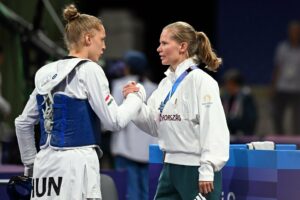 Habla el oro olímpico de París 2024, Viviana Márton: “En 2018 decidimos mudarnos a Madrid. Conocimos a Hankuk dos años antes en un campamento en Tenerife y mis padres dijeron que para ser campeonas olímpicas teníamos que venir a este club. Fue un cambio grande, pero nosotras no éramos tampoco muy conscientes, teníamos doce años. Tenemos mucha suerte de tener un equipo tan profesional. Teniendo este equipo tenemos la confianza de que vamos por el buen camino, que estamos preparadas porque estamos entrenando cada día con las mejores del mundo. No te puedes relajar, cada día tienes que estar al 100%”. Su hermana Luana, bicampeona mundial, también expresa una gran satisfacción por pertenecer a este equipo: “Los entrenadores desde el principio han confiado en nosotras. El principal valor de este club es el esfuerzo diario, la humildad, el respeto entre compañeros y el trabajo en equipo. Entrenamos de lunes a sábado dos veces al día, cambiando entre trabajos de fuerza, aeróbicos, técnico-tácticos de taekwondo, de resistencia…Jesús va valorando todos los entrenamientos. Una vez por semana también tenemos una sesión de coaching mental, que nos ayuda un montón para estar bien. Nos ayudamos mutuamente entre todos, la verdad es que es un equipazo”.