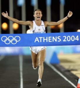 Para entonces el dúo compuesto por Baldini y Keflezighi corrían 15 segundos al kilómetro más veloces que Lima, estando a 6 kms de la llegada. A menos de 5 kilómetros el italiano decidió que era el punto y el momento para separarse de Keflezighi y de coger a Lima. Sin girarse, llegó a la meta en solitario, 34 segundos por delante del norteamericano y 1 minuto y 16 segundos por delante del brasileño. Más tarde Stefano Baldini confesaría que vivió el último kilómetro de la final olímpica de Atenas con la “certeza absoluta” de que sería oro…y eso que dos meses antes había vivido el peor momento de su vida debido a la separación de su mujer, llegando a decirle a su entrenador que no podía seguir.